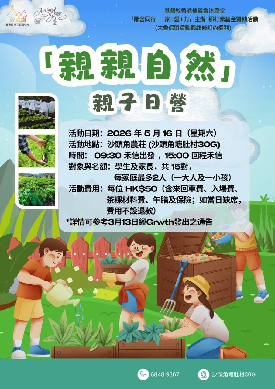 | 兒童果園 | 逢星期日上午10:00-11:30 | 地下副堂 | 適合小學生 |