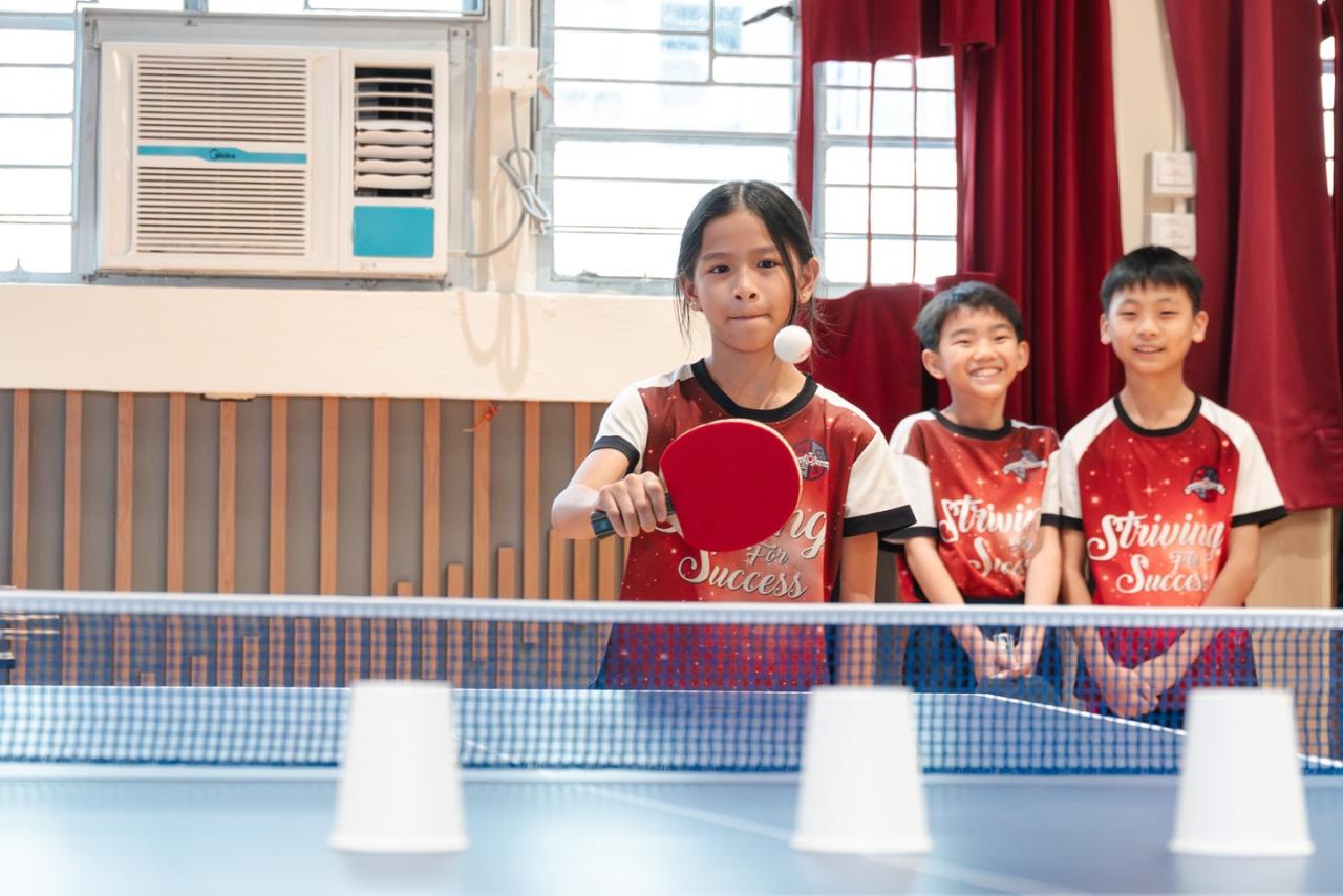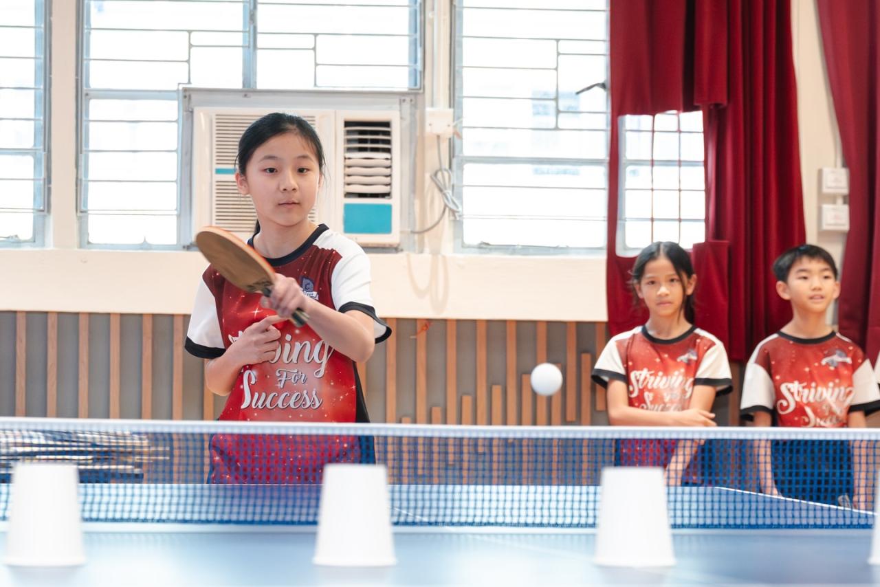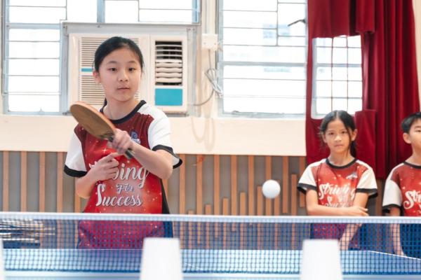 在傳授完乒乓球小知識 後,鈞濤哥哥更即場挑選幾位同學參與「乒乓球大挑戰」。當日特別亦安排了雙打環節,讓乒乓球校隊的成員能與鈞濤切磋技藝。大家都十分投入,玩得十分盡興,深刻體會到乒乓球帶來的無窮樂趣!