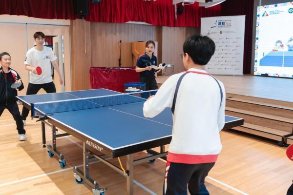 After sharing some table tennis tips, Kwan To selected a few students from the audience to participate in the "Table Tennis Challenge." The day also included a doubles session, allowing members of the table tennis school team to spar with Kwan To. Everyone was highly engaged, thoroughly enjoying themselves and experiencing the endless fun that table tennis brings!