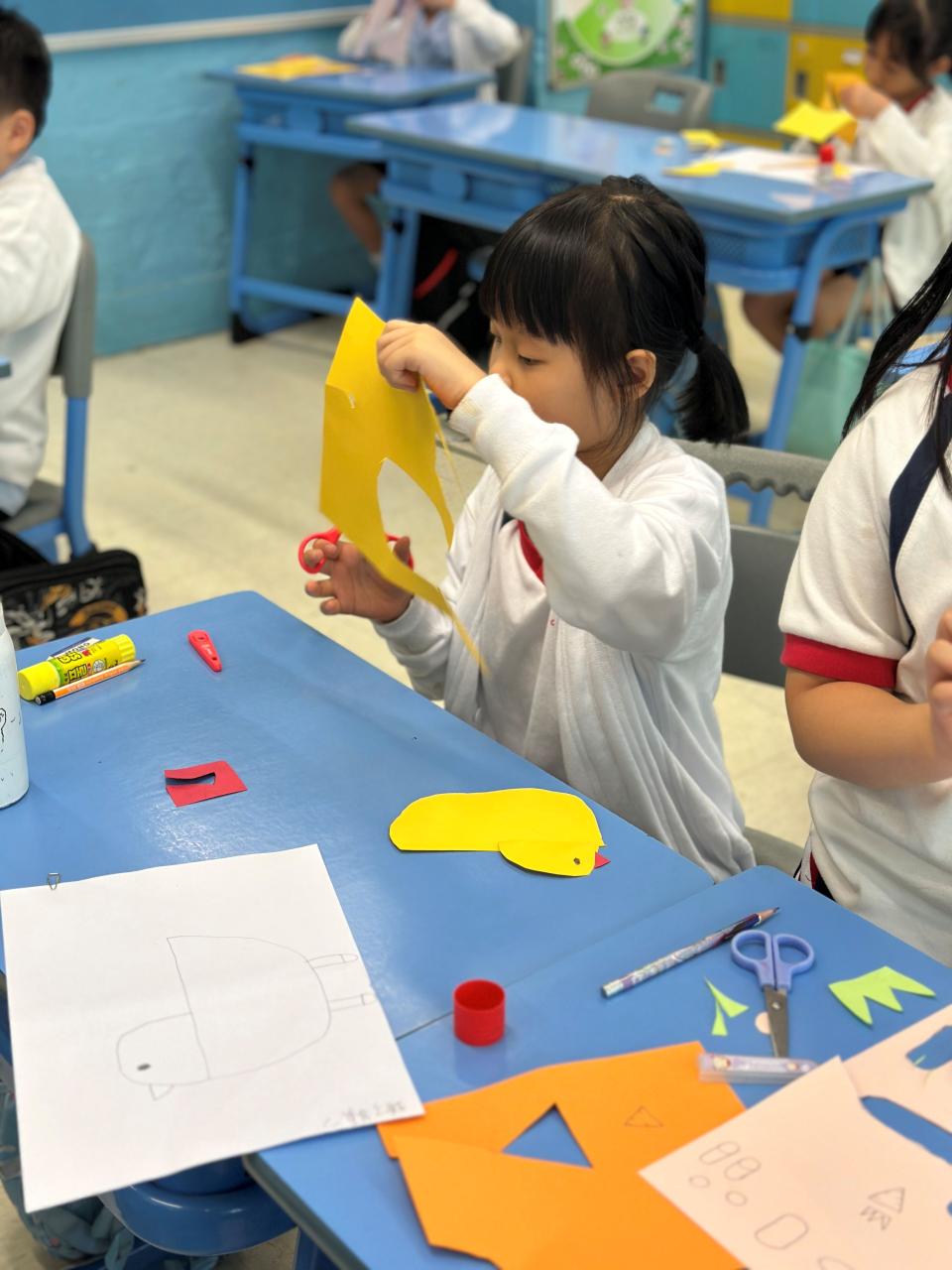 學生將於視藝課所學到的技巧(例如:運用剪刀﹑圖形組合及塗顏色等)運用到 HEAD Program 活動中,進行不同類型的藝術創作。