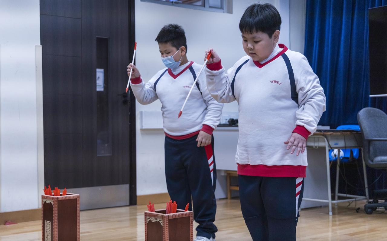 雜耍體驗活動 (拋接絲巾的技巧)參加香港文化博物館導賞團傳統樂器體驗活動(5位高年級代表彈奏樂曲、利用 IPAD 的音樂程式 Garageband,為賀年歌曲配上節奏伴奏)竹竿舞及蹴鞠體驗