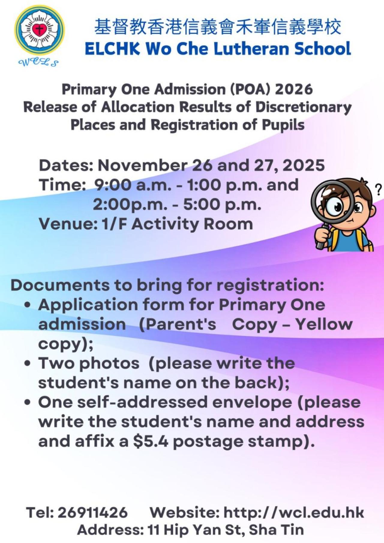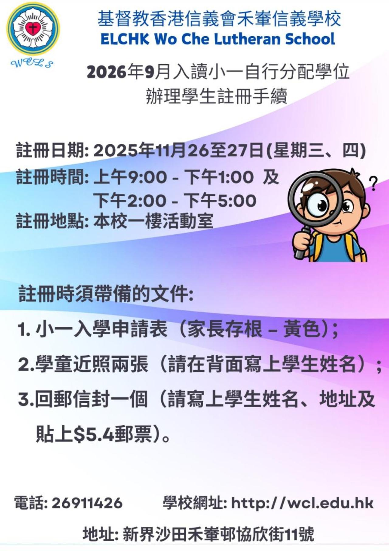 有關2026年9月入讀小一自行分配學位辦理學生註冊手續